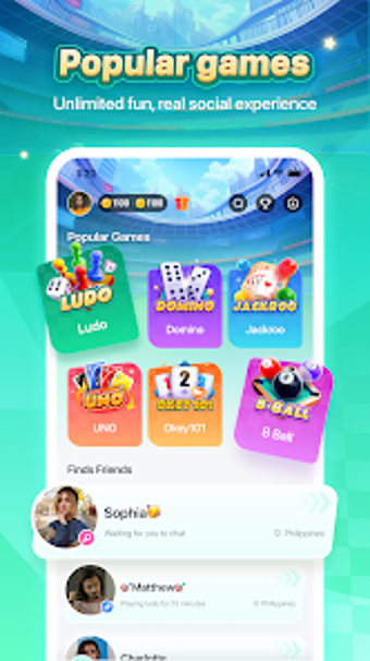 FunUp es una aplicación de juegos sociales diseñada para Android que ofrece una experiencia de entretenimiento ilimitada. Los usuarios pueden disfrutar de una variedad de juegos clásicos como Ludo, Jackroo, Umo, Domino y Okey, permitiendo que cada jugador encuentre su desafío favorito. La aplicación fomenta la interacción social a través de salas de voz en tiempo real donde los jugadores pueden discutir estrategias y compartir momentos de vida, fortaleciendo así sus conexiones con amigos y familiares.